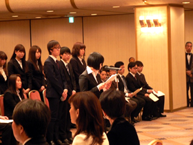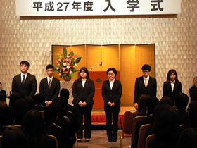 4月8日(水)に飯田橋のホテルグランドパレスにて駿台外語&ビジネス専門学校、駿台電子情報専門学校、駿台法律経済専門学校 お茶の水地域にある3校合同で入学式が行われました。各校から新入生代表がそれぞれの目標に向け、誓いの言葉を述べました。