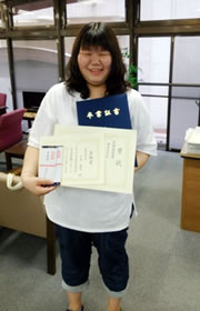 山本さんには、卒業証書と一緒に2年間皆勤賞と2年次成績優秀賞も手渡されました。