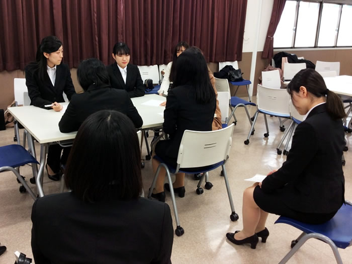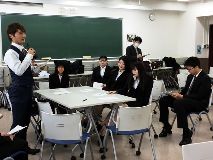 そのような中、春休み期間中、今までのキャリアガイダンス、就職対策、ビジネスマナーの授業の総仕上げとして集中授業「就職対策(就活クール)」を行っています。