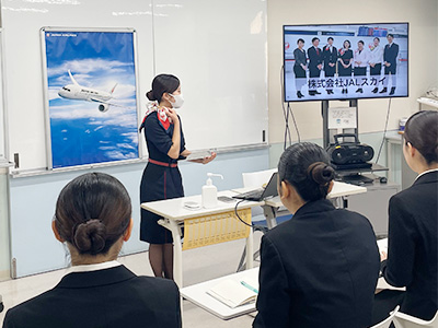 JALのグランドスタッフのお仕事を担う株式会社JALスカイ様にお越しいただき、校内にて企業説明会を開催しました。