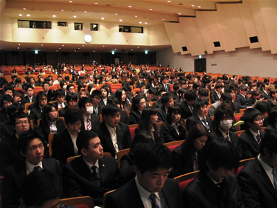 ホーム 新着一覧 新着情報 2013年4月30日 入学式が行われました 4月10日(水)に日本教育会館 一ツ橋ホールにて駿台外語&ビジネス専門学校、駿台電子情報専門学校、駿台法律経済専門学校 お茶の水地域にある3校合同で入学式が行われました。 入学式の会場 一ツ橋ホール。 新入生でいっぱいになりました。 2年生の成績優秀者(中央2名)の緊張した空気が伝わってきます。 新入生代表の言葉です。これから2年間、一緒に夢を実現させましょう。 本校の特長 教育システム 講師一覧 講師メッセージ 在校生メッセージ 学校行事 Q&A MESSAGE 卒業後の進路 卒業後の進路 就職 大学編入 海外留学 資格取得 入学要項 学生募集要項 コース案内 コース一覧 エアライン学科2年制 エアラインコース 空港サービスコース 英語学科2年制 英語ビジネスコース 大学編入コース 留学コース 二言語キャリア学科2年制 韓国語+英語コース 韓国語学科2年制 韓国語コース 中国語学科2年制 中国語コース 語学専科1年制 英語ビジネスコース 英語海外留学コース 韓国語コース 中国語コース オープンキャンパス オープンキャンパス 日程一覧 資料請求・イベント申込 資料請求・イベント申込