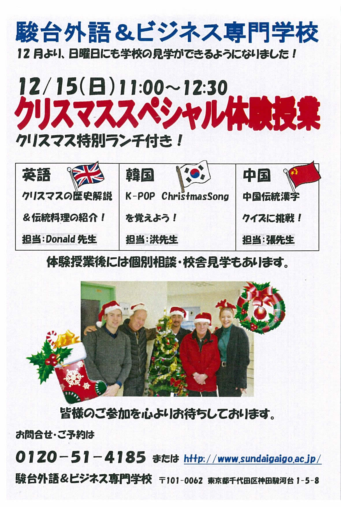 12月から月に1回開かれる、普段の体験授業とは一味違うスペシャル体験授業。