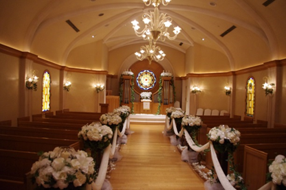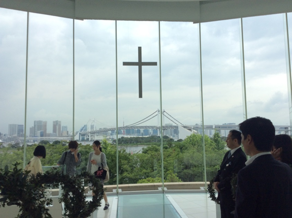 チャペルも見せていただきました。奥には重厚感のある本物のオルガンも。女子学生は「こんなところで結婚式を挙げたい(^^)!と大はしゃぎです。