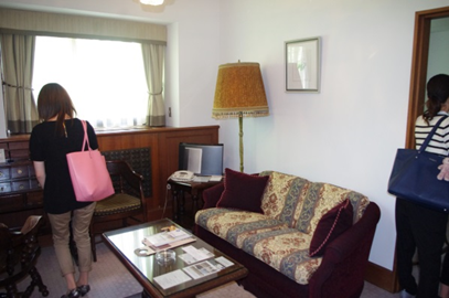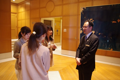 ホテルマンからは山の上ホテルの歴史を伺いました。学校の直ぐのところにこんなにも歴史を感じるホテルがあるのだと、学生たちは感心していました。