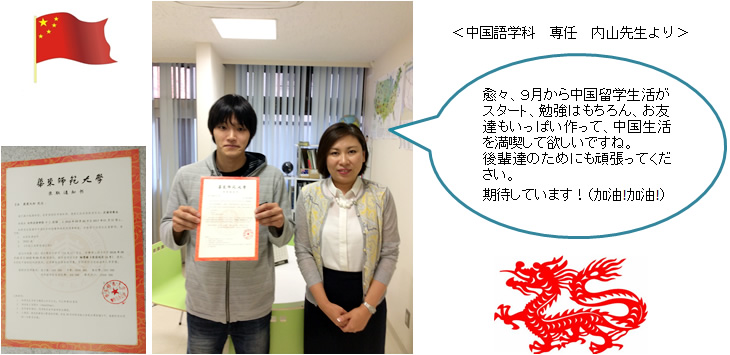 6/28(火) 中国に留学予定の2016卒業生が来校してくれました!