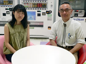 国際ビジネス学科(2017年より英語ビジネス学科に改称予定)を卒業し、現在は貿易事務のお仕事をしている福島瑞生さんがオープンキャンパスの在校生スタッフとして活躍してくれました。