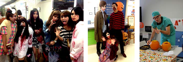 この期間のみ校舎が本格的アメリカ式お化け屋敷に大変身!!ネイティブ講師、在校生スタッフ、職員、ゾンビ、ゴースト、魔女が皆さんをお待ちしています。