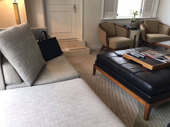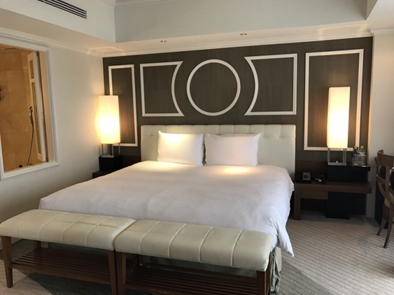 周辺には日比谷公園や皇居があり、窓から見える景色には緑が多く、ホテル内は高級感のある落ち着いた雰囲気でした。