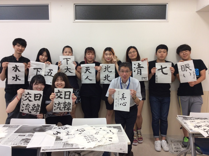 韓国の東明大学生の日本文化体験セミナーレポート② ~書道体験~