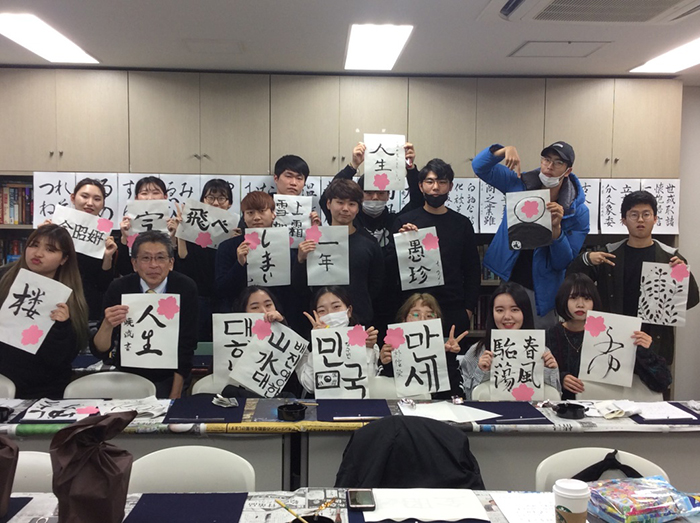 夏期のセミナーに引き続き、韓国・釜山にある東明大学の大学生が研修のために駿台外語に来校しています。この冬のプログラムは約4週間の日程で、日本語の授業や文化体験を通じて日本の文化を体験しています。また、本校の韓国語学科の日本人学生と交流する機会も多くあります。