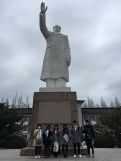 大学ではさっそく毛沢東の像の前に集合写真を撮りました。