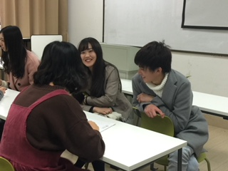 駿台生は中国語で、大学生は日本語でそれぞれがふだん勉強した来た言語が通じるか、さっそくチャレンジです。