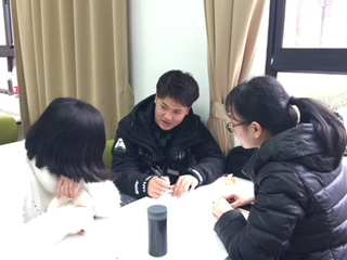 大学には、日本語を勉強する中国人の学生も多く在籍しています。到着後はさっそく大学生との交流会を設けてくれました!