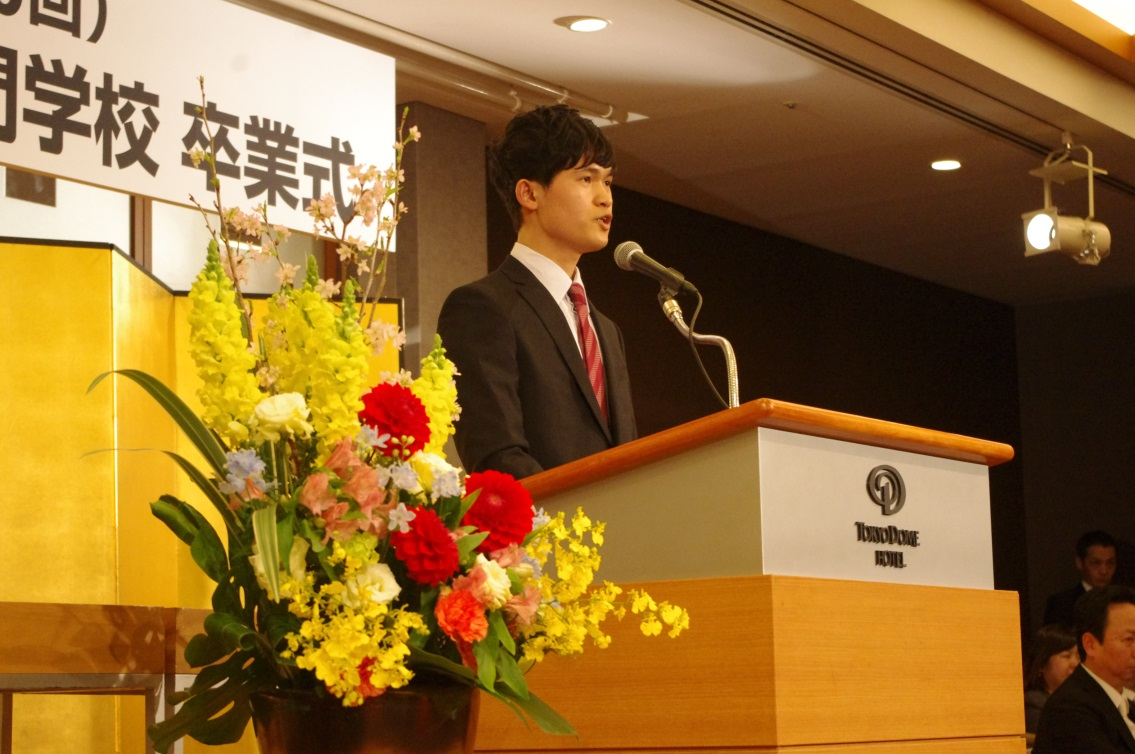 成績優秀者の部門においては19名の卒業生が表彰され、代表者1名が登壇しました。