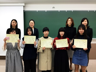 校長先生から賞状・賞品をいただき大喜び。2年次もオールA&出席率100%を目指します!(なお、成績優秀者のトップの学生の表彰式は、新入生の入学式の式典内で行われます)