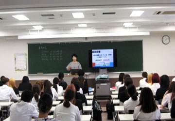 本校では在籍する1年生に向け、就職の意識を高めるために夏期集中講座を行っております。内定者の2年生の先輩から1年生へ生の声を届ける「テーブルトーク」、リクルートスーツや就活メイクを理解させる「スタイルアップセミナー」、「業界別研究」、そして「履歴書作成」「社会人準備セミナー『敬語』」など、早期から意識を高く持つ講座を開催しました。