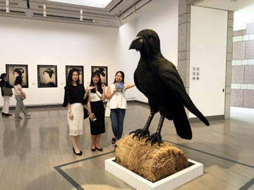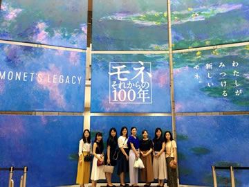 2年生になるとこの課外活動のテーマを決めるにあたり、事前に自分が好きな美術館、好きな画家、好きな作品について、各自で調べ、クラスの仲間にプレゼンテーションを行っています。実は毎年、印象派のフランスの巨匠モネが一番人気です。今年はちょうど横浜美術館で「モネそれからの100年」展が開催されていましたのでさっそく見学に行きました。モネは葛飾北斎をはじめとした浮世絵に感化され、睡蓮を描く連作には日本風の太鼓橋を取り入れる作品を世に出すなど、日本にとっても縁の深い画家で有名です。