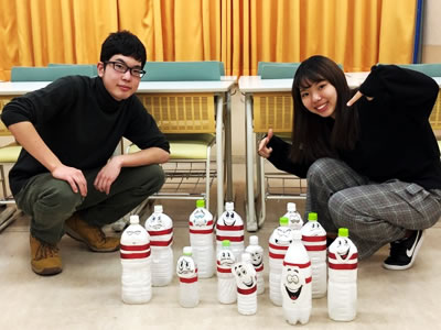 英語ビジネス&英語学科の学生が、独自に開発した倒れにくいピンを使って、ボーリングゲームを実施。ピンがなかなか倒れず、ボーリングですが、サッカーのように足を使ってプレーをする人が続出でした。
