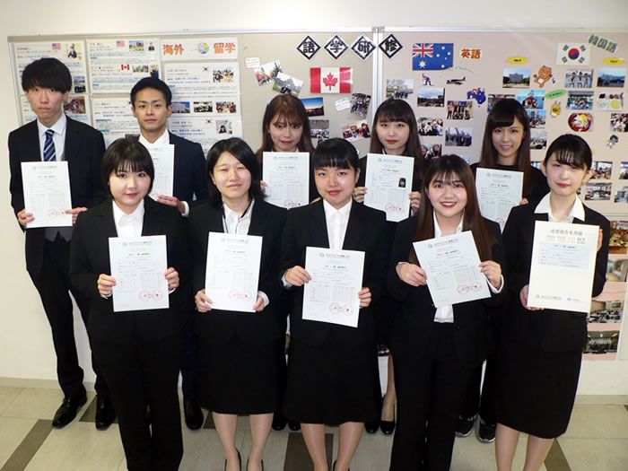本校の授業は少人数制のため、講師が生徒一人ひとりに目を配りやすい環境です。各学生が持つそれぞれの目標に沿って、講師がしっかりと指導を行います。授業で養った知識を活かして、多くの学生が検定試験に挑戦しています。