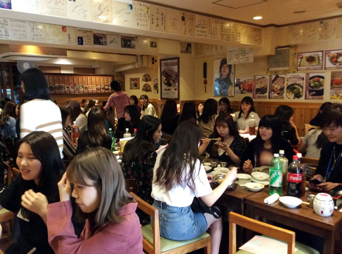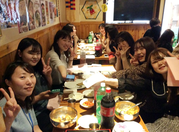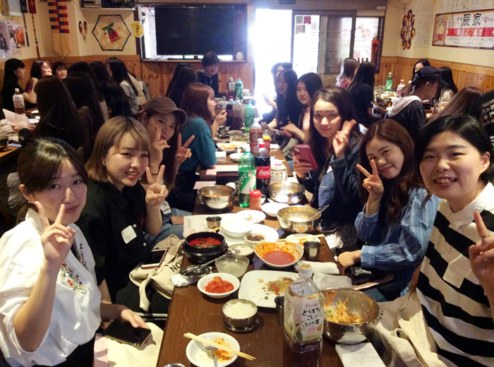 メインのご飯は皆さんそれぞれ食べたいものを韓国語で注文したり、1年生は2年生の先輩に勉強のアドバイスをいただいたりなど、とても有意義な時間を過ごせたようです。