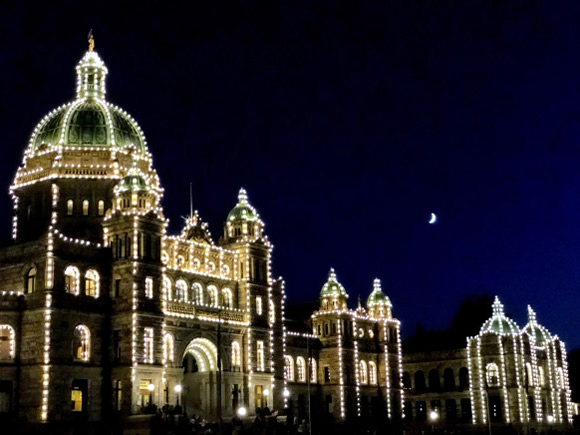 夜にダウンタウンに行った際に撮ったレジスレイティブ・アッセンブリー・オブ・ブリィティッシュ・コロンビアという政府機関の建物です。ライトアップされておりとても綺麗でした。