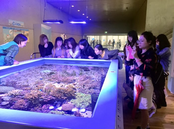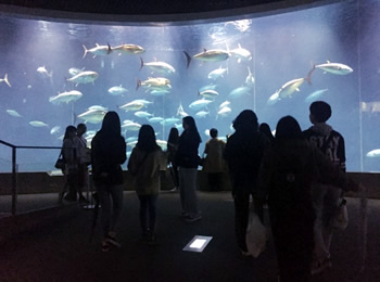 大型水槽の中を回遊する大迫力のマグロの群れに、皆思わず見とれていました。