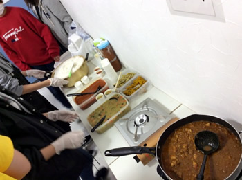 インドカレーマニアの学生(N君)が、3種類のカレー&インド惣菜を手作りし、学生に提供しました。また、彼が実際に行ったことの御茶ノ水界隈にあるカレー屋さん(20店!)をマップにまとめ、紹介しました。昼休みには多くの学生がカレーの匂いにつられ、長蛇の列ができました!