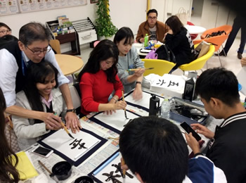 書道部員・顧問による指導の元、中国文化と日本を結ぶ書道の心を学びました。