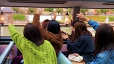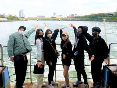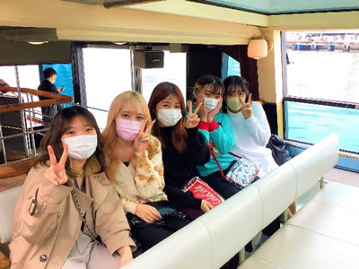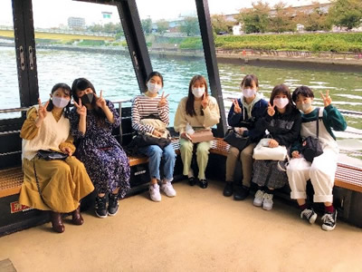 船が動き出すと、水上バスは初めてという学生も多く、テンションはMAX!