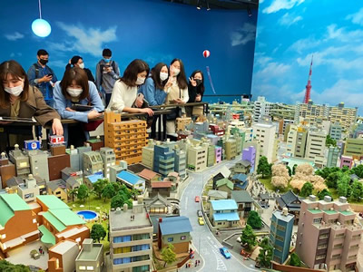 本物そっくりに作られたミニチュアの精巧さに、学生達も見入っていました。