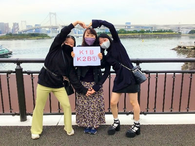 偶然にも、エアライン学科の卒業生が、河岸で手を振っているという、奇跡に大喜び。