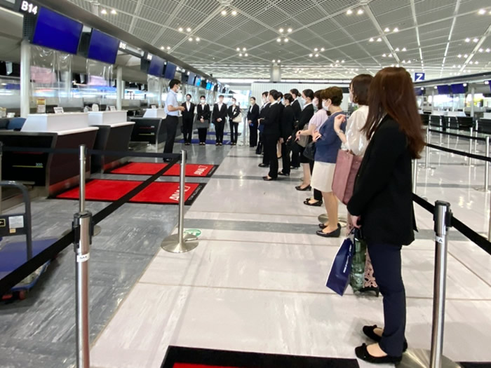 成田空港では、グランドスタッフとして働いている卒業生に空港案内をしていただきました。当日はお仕事がお休みにもかかわらず、空港案内や業務の説明などしてくださり本当にありがとうございます!