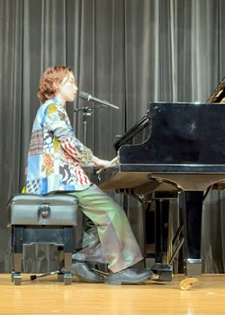 スピーチコンテストの後、英語学科の卒業生で、現在歌手活動をしているZaKiさんが歌を披露してくれました。