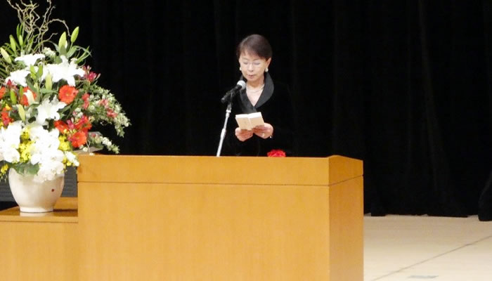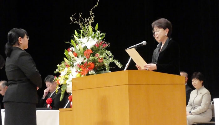 式典では山﨑良子理事長よりご挨拶をいただき、新入生は真剣にそのお言葉に耳を傾けていました。