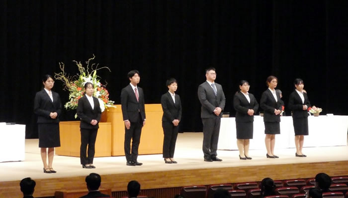 そして、新入生代表「誓いの言葉」では、二言語キャリア学科の藤田 真衣さんが、壇上で「誓いの言葉」を述べました。