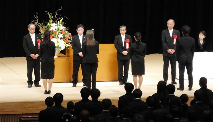 入学式では、進級した新2年生の成績優秀者への表彰とJPET(日本語能力評価試験)賞授賞式も行われました。