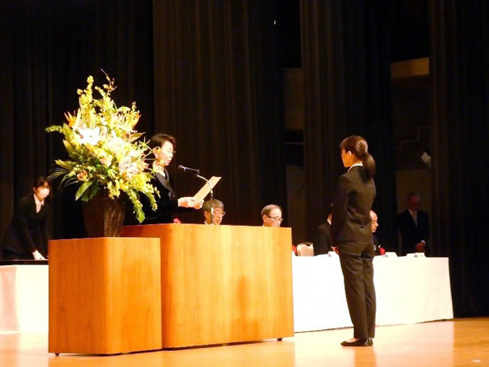 <理事長から成績優秀賞の表彰>