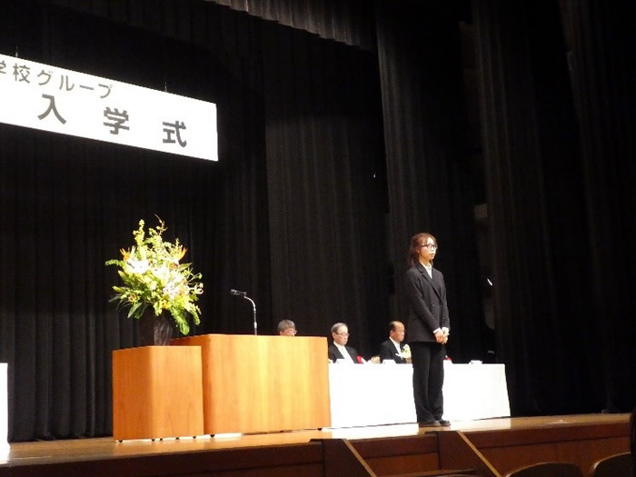 そして、新入生代表「誓いの言葉」では、エアライン学科の山本 麻央さんが、壇上で「誓いの言葉」を述べました。