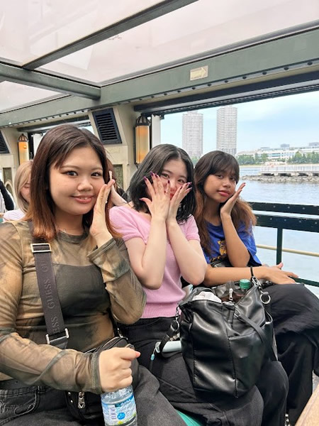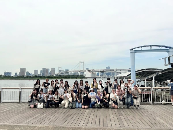 船着場に集合し、クラス写真を撮影した後、貸切のクルーズ船に乗り込み、お台場から浅草に向かいます!