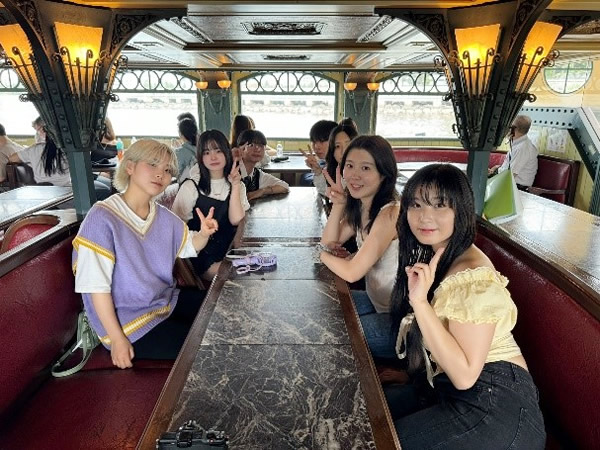 クルーズ船は初めてという学生も多く、船内は賑やかな雰囲気です!