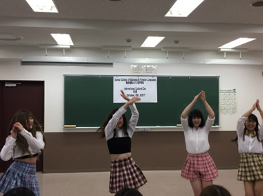 ダンスが得意な韓国語学科と英語学科の在校生が、演技を披露!