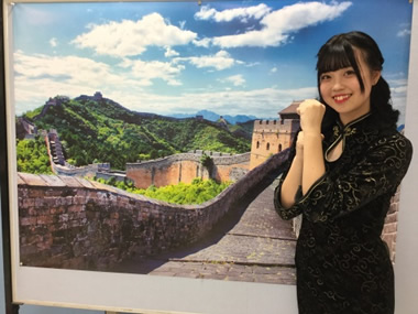 日本(浴衣)、中国(チャイナドレス)、韓国(韓服)の民族衣装を身にまとい、各国の特徴的な街並みや風景を写した大型パネルの前で、まるでその国に訪れたような写真を撮影!
