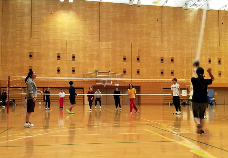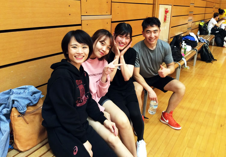 お昼休憩の後は、バドミントンの試合からスタート。バドミントンでは女子学生の参加が多く目立ちました。