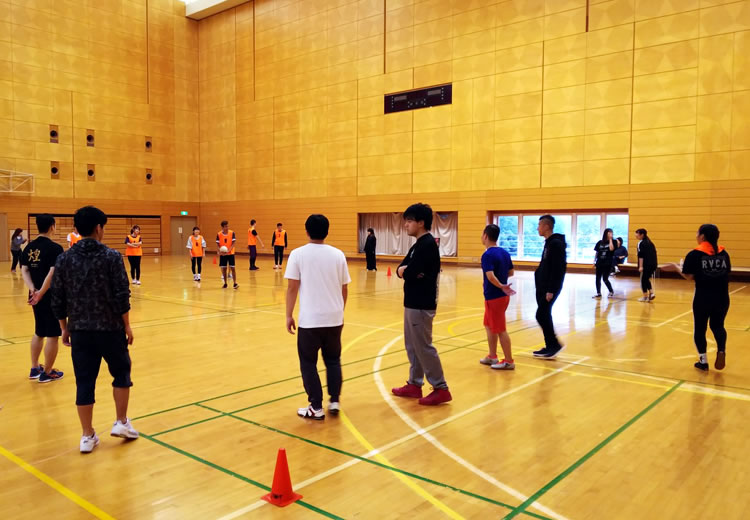 そして、最後の種目はドッジボールです!日本人にとっては馴染みのあるスポーツですが、留学生にとっては、初めてプレーする学生がほとんどでした。サポーターから留学生にドッジボールのルールを教えてもらって、いざ試合開始!
