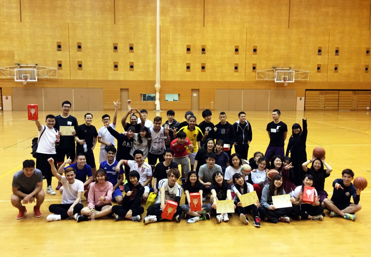 バスケットボールの優勝チームは左側の留学生チーム。素晴らしいチームプレーでした。おめでとうございます!