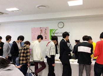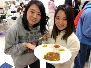 インドカレーマニアの日本人学生(N君)が、3種類のカレー&インド料理を手作りし、学生に提供しました。また、彼が実際に行ったことの御茶ノ水にあるカレー屋さん(20店!)をマップにまとめ、紹介しました。昼休みには多くの学生がカレーの匂いにつられ、長い列ができました!