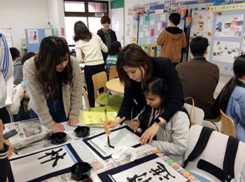 書道部員と顧問の先生による指導の元、日本と中国文化の書道の心を学びました。