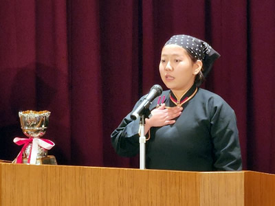 苦手な日本語でスピーチコンテストに参加することにしたが、段々と不安が出てくる中で、自分が何を大切にしたいのか、失敗を恐れずに挑戦することについてスピーチをしてくれました。