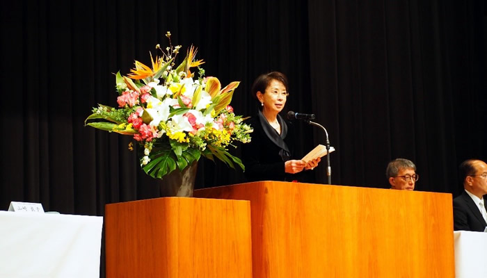 式典では山﨑良子理事長よりごあいさつをいただき、新入生は真剣にそのお話を聞いていました。